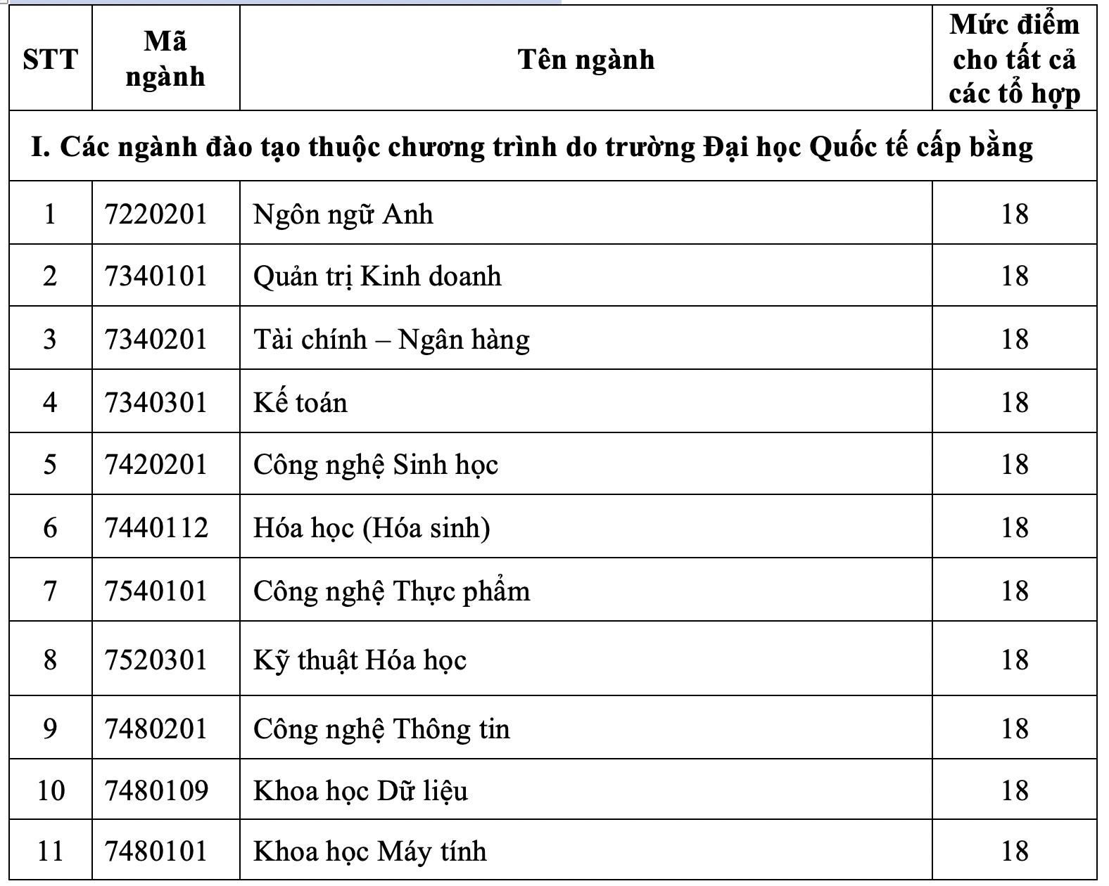Điểm sàn Trường ĐH Khoa học Tự nhiên TP. Hồ Chí Minh 2022 như sau: