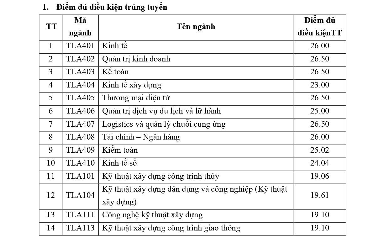 | 24 | 7380107 | Luật kinh tế | 24,50 | 25,25 |