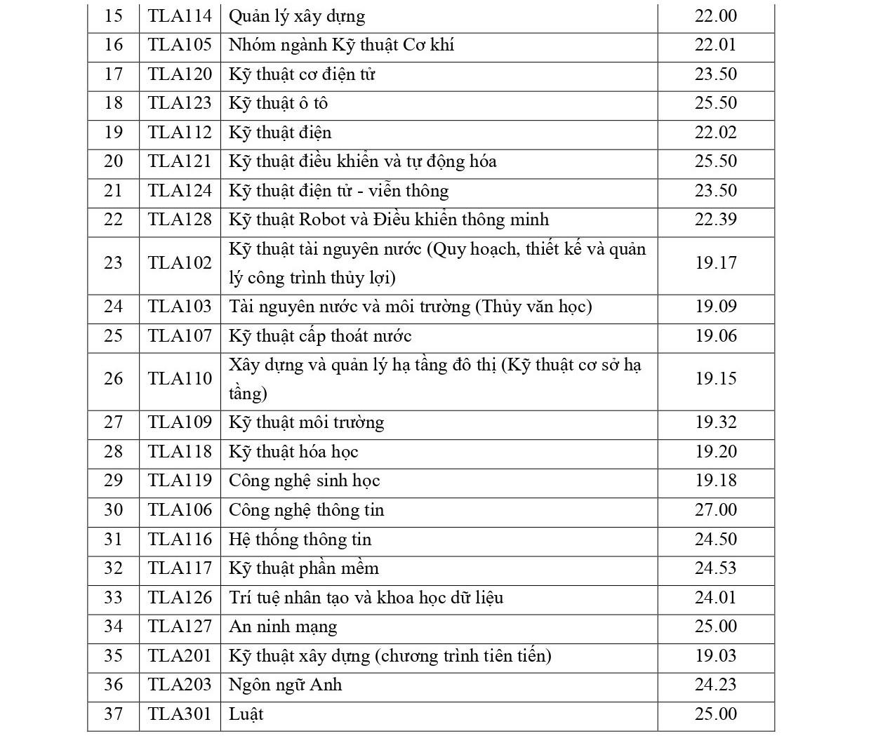| 11 | 7510303 | Công nghệ kỹ thuật điều khiển và tự động hóa | 21,50 | 23,50 |