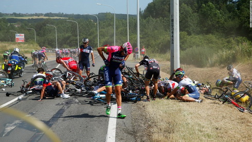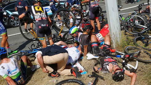 Vụ tay nạn xảy ra ở km thứ 65 của chặng đua khiến 20 tay bị thương. Nguyên nhân ban đầu được xác định là do cua rơ William Bonnet bị ngã, khiến một loạt đối thủ phía sau không kịp phản ứng.