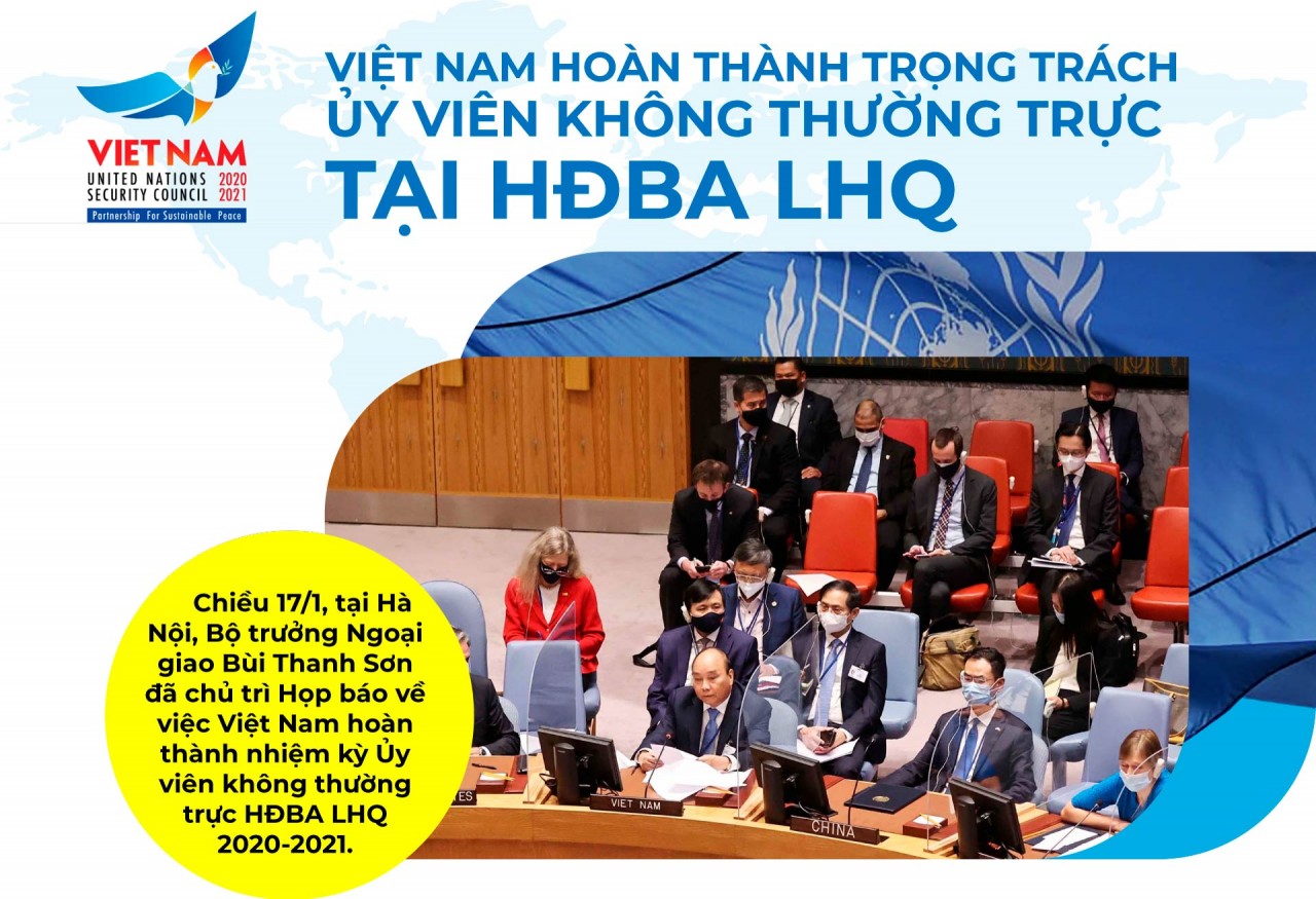 | Theo Bộ trưởng Bùi Thanh Sơn, sau hai năm sát cánh cùng các thành viên khác, Việt Nam đã hoàn thành trọng trách Ủy viên không thường trực Hội đồng Bảo an Liên hợp quốc (HĐBA LHQ) nhiệm kỳ 2020-2021. Hai năm qua là giai đoạn hết sức khó khăn đối với thế giới nói chung và HĐBA nói riêng do những chuyển biến phức tạp, khó lường, chưa có tiền lệ của cục diện quốc tế. Chiến tranh, xung đột, bất ổn vẫn tiếp tục diễn ra ở nhiều khu vực, thậm chí bùng phát ở nhiều điểm mới trên thế giới. Cạnh tranh chiến lược giữa các nước lớn, các hành vi chính trị cường quyền, không tuân thủ Hiến chương LHQ và luật pháp quốc tế, làm cản trở nỗ lực xử lý các thách thức trong khi các vấn đề toàn cầu như: biến đổi khí hậu, dịch bệnh, an ninh lương thực, an ninh nguồn nước, khủng bố... ngày càng phức tạp. Đặc biệt, tác động sâu, rộng của Covid-19 đã khiến các nước phải điều chỉnh cả ưu tiên về đối nội và đối ngoại để ứng phó với việc phục hồi và phát triển kinh tế. Bản thân LHQ cũng phải đóng cửa và chuyển sang hoạt động trực tuyến trong một thời gian dài. Trong bối cảnh đó, Bộ trưởng Bùi Thanh Sơn đánh giá, HĐBA đã thích ứng nhanh, duy trì tốt các hoạt động, phát huy vai trò cơ chế quan trọng hàng đầu, không thể thay thế trong duy trì hòa bình và an ninh quốc tế. Theo thống kê, trong hai năm, HĐBA đã có hơn 840 cuộc họp cấp đại sứ trở lên và hàng nghìn cuộc tham vấn các cấp; thông qua được 254 văn kiện dưới các hình thức khác nhau. HĐBA đã có chương trình nghị sự rất phong phú, với nhiều nội dung rộng khắp, bao quát tất cả các châu lục, nhiều điểm nóng và vấn đề quốc tế quan tâm từ Covid-19 đến an ninh khí hậu, an ninh biển, hoạt động gìn giữ hòa bình, bảo vệ người dân, chống khủng bố, tình hình xung đột bất ổn tại Syria, Yemen, Israel Palestine, Ethiopia, Haiti, Myanmar... HĐBA cũng ngày càng tranh thủ tốt hơn vai trò của các tổ chức khu vực trong đó có Liên minh châu Âu và Liên minh châu Phi, đặc biệt là ASEAN. |