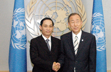 | Đại sứ Lê Hoài Trung, Trưởng Phái đoàn đại diện thường trực Việt Nam tại Liên hợp quốc (trái) và Tổng thư ký Liên hợp quốc Ban Ki-Moon (Nguồn: TTXVN) |