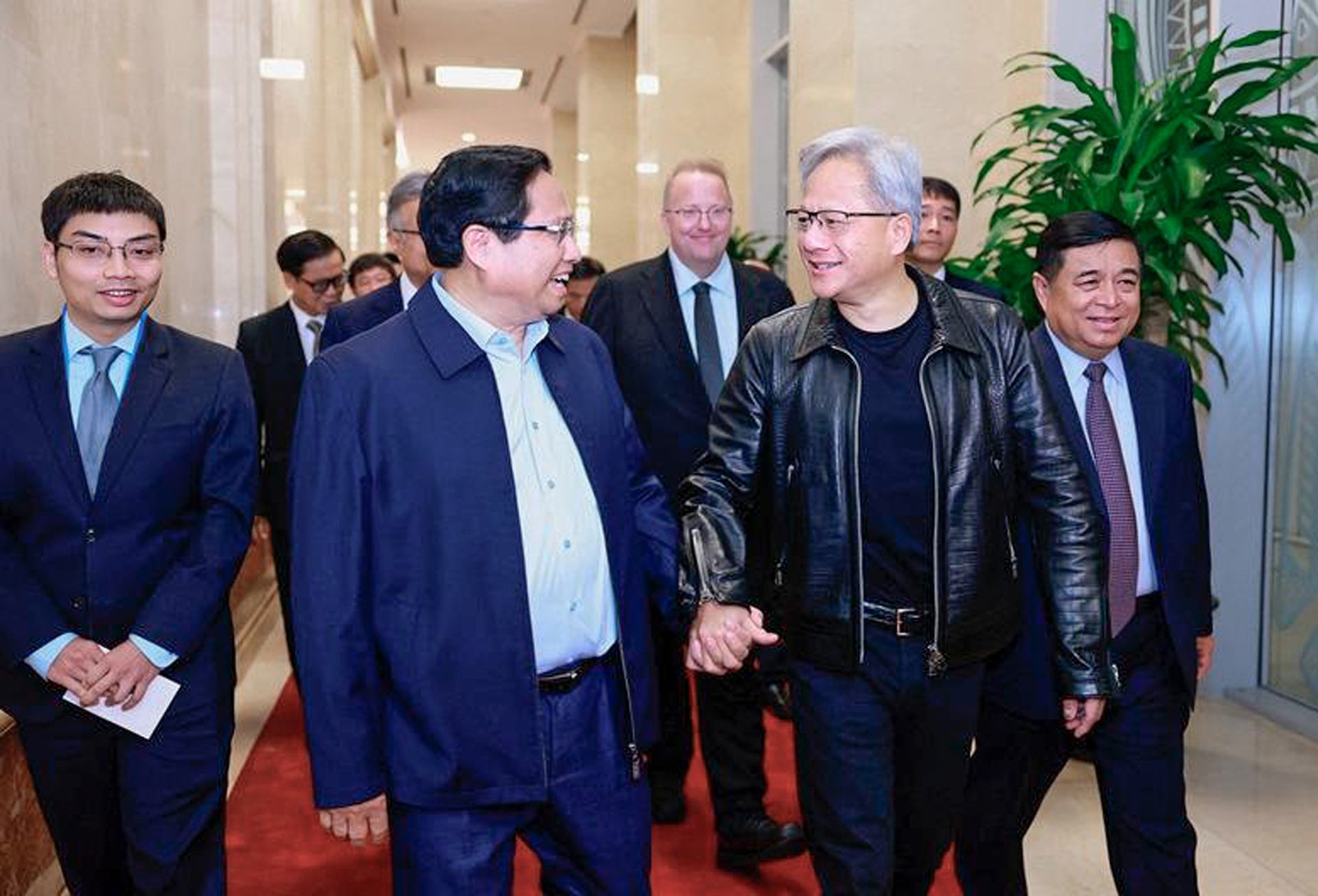 | “Bình thường, thời tiết và cảnh quan Hà Nội đã rất đẹp. Nhưng hôm nay lại thấy mọi thứ còn đẹp hơn nữa!”, Đại sứ Hoàng Anh Tuấn, Tổng lãnh sự Việt Nam tại San Francisco (Mỹ) viết trên trang cá nhân khi ông vừa về nước. Lòng ông có gì vui rộn ràng đến vậy, khoác lên cả cảnh vật, cả cái lạnh đầu Đông? Câu trả lời chắc chắn là dịp trở về này, cùng ông, còn có một vị khách đặc biệt của Thủ tướng Chính phủ Phạm Minh Chính - Chủ tịch Tập đoàn NVIDIA Jensen Huang, người giữ trọn lời hứa “biến Việt Nam thành ngôi nhà thứ hai của NVIDIA”. |