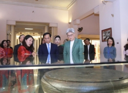| Phó Thủ tướng, Bộ trưởng Ngoại giao Bùi Thanh Sơn và Bộ trưởng Ngoại giao Australia Penny Wong thăm Bảo tàng Lịch sử Quốc gia chiều ngày 20/8. (Ảnh: Thành Long) |