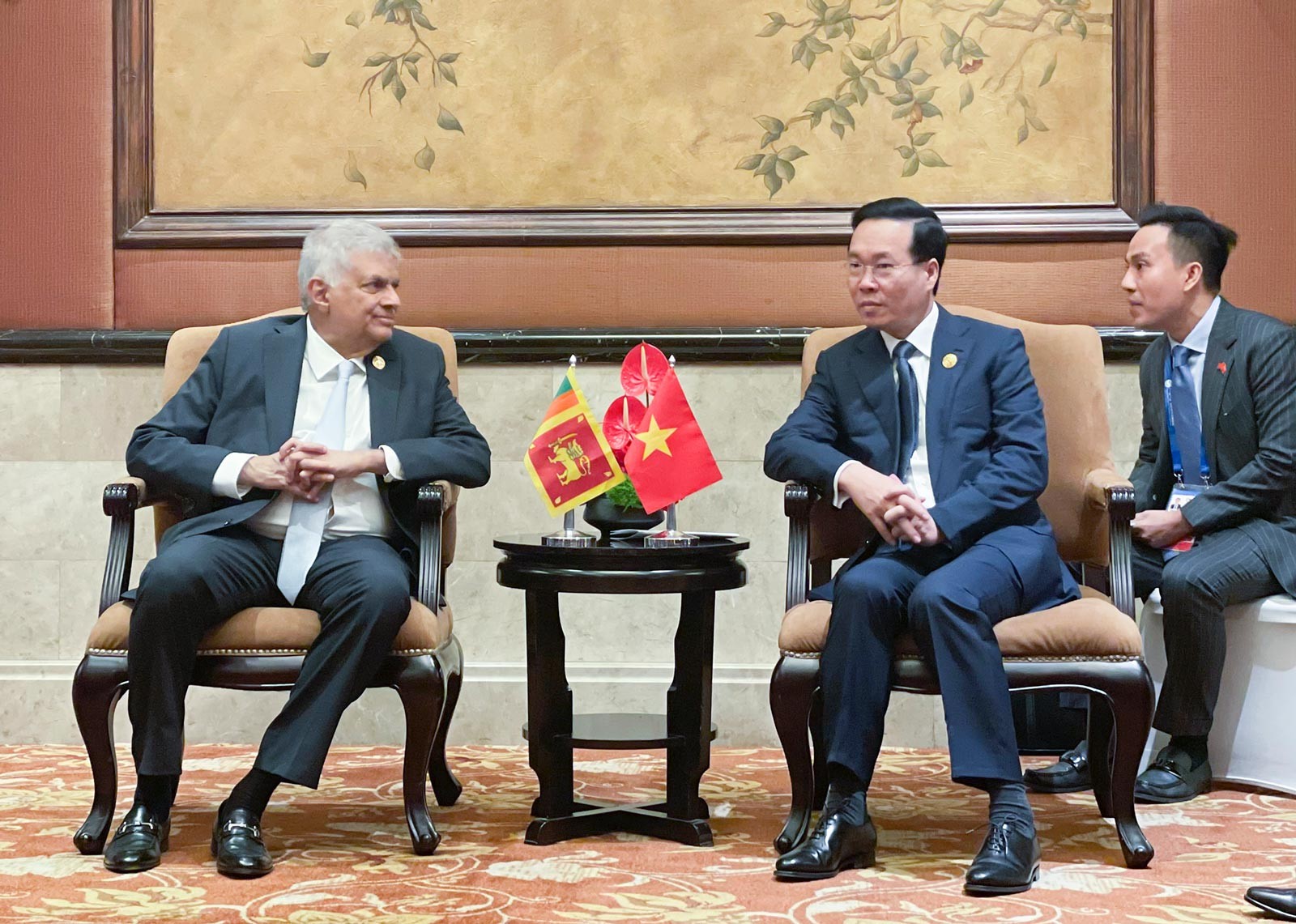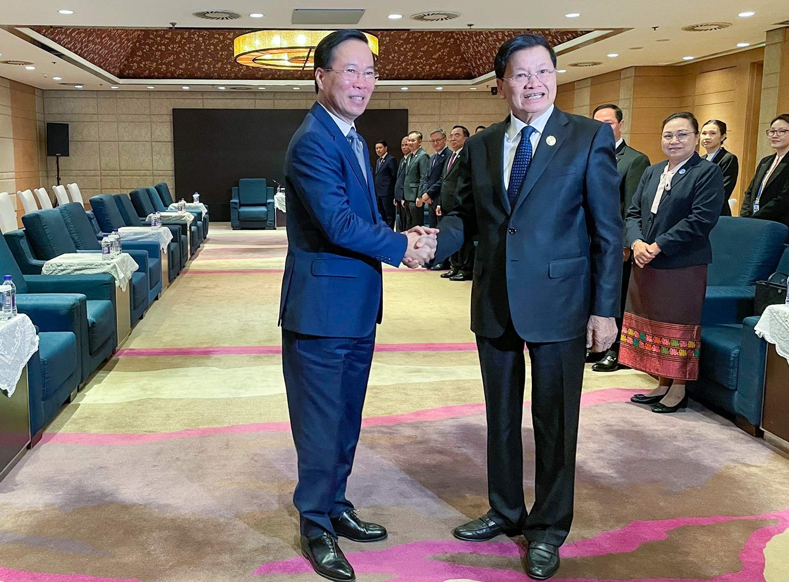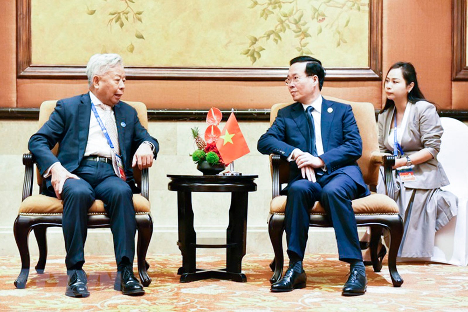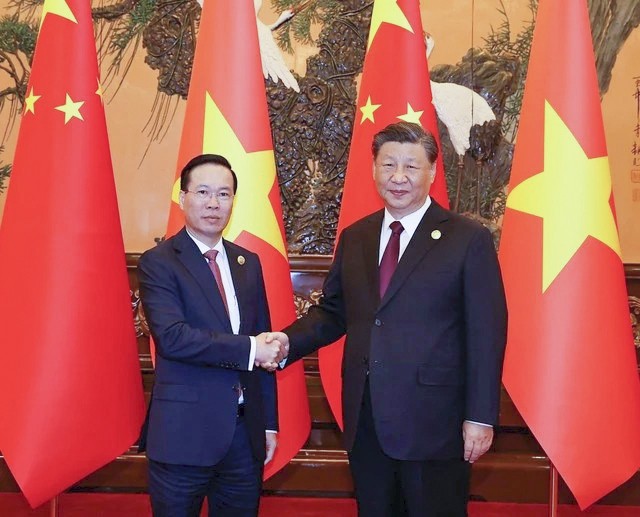 Tại các cuộc hội kiến, Chủ tịch nước Võ Văn Thưởng đã cùng Tổng Bí thư, Chủ tịch Trung Quốc Tập Cận Bình và các đồng chí Lãnh đạo cấp cao Trung Quốc trao đổi sâu rộng về các định hướng lớn, biện pháp cụ thể nhằm tăng cường tin cậy chính trị, làm sâu sắc và nâng tầm quan hệ đối tác hợp tác chiến lược toàn diện Việt Nam - Trung Quốc trong giai đoạn mới. Các nhà lãnh đạo hai bên cũng nhất trí cùng nỗ lực thúc đẩy quan hệ bước vào giai đoạn phát triển mới với tin cậy chính trị cao hơn, hợp tác thực chất, sâu sắc hơn, nền tảng dân ý vững chắc hơn và bất đồng được kiểm soát tốt hơn. Đồng thời, gia tăng nhận thức chung về những phương hướng, biện pháp lớn nhằm thúc đẩy hợp tác thực chất trên các lĩnh vực; nhất trí tiếp tục thúc đẩy hợp tác kinh tế - thương mại, đầu tư phát triển theo hướng nâng cao hơn nữa chất lượng, hiệu quả; tăng cường kết nối chiến lược giữa khuôn khổ “Hai hành lang, Một vành đai” với “Vành đai và Con đường”; ưu tiên hơn nữa cho kết nối đường sắt, đường bộ, hạ tầng cửa khẩu, góp phần bảo đảm thông suốt chuỗi sản xuất, chuỗi cung ứng giữa hai nước và khu vực. |
