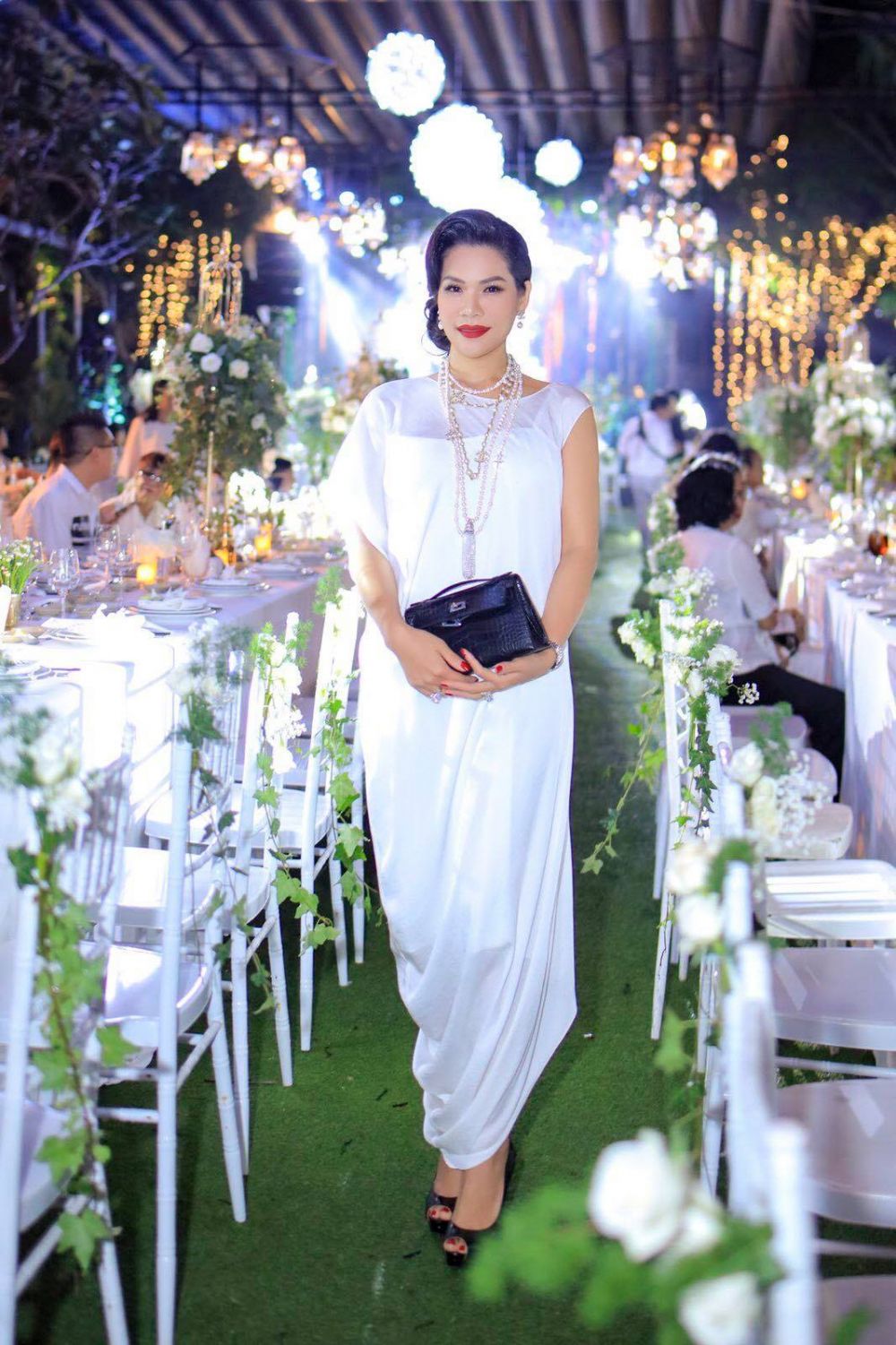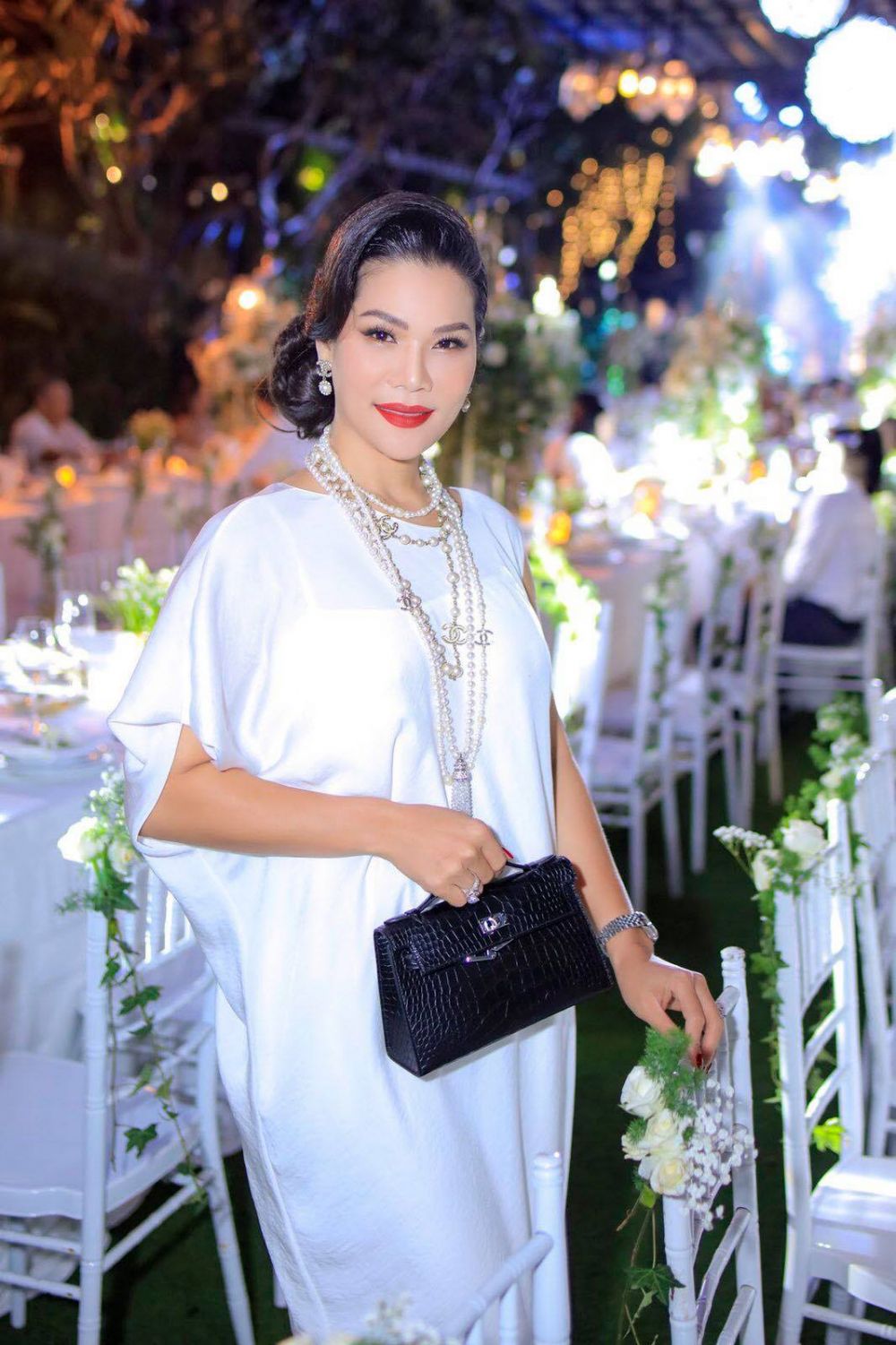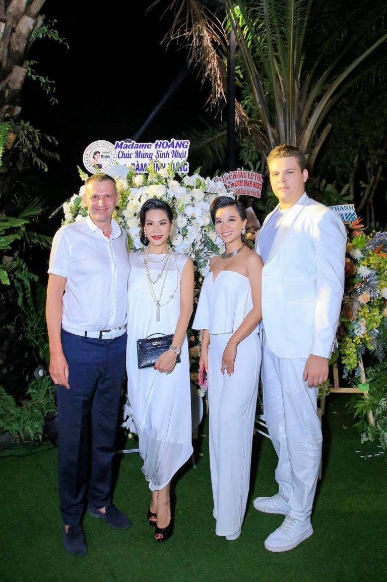 Hương Hoàng là một trong những người đẹp có mối quan hệ thân thiết với nhiều sao Việt, trong đó có ca sĩ Đàm Vĩnh Hưng. Vừa qua cô cùng chồng mình cũng là những vị khách mời đặc biệt trong tiệc sinh nhật của nam ca sĩ.