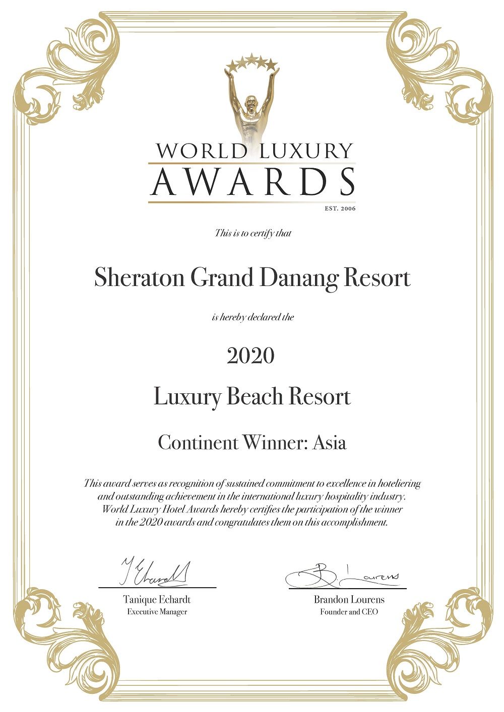 Được thành lập từ năm 2006 Giải thưởng World Luxury Hotel & World Luxury Restaurant Awards thuộc hệ thống giải thưởng uy tín bậc nhất thế giới trong lĩnh vực dịch vụ khách sạn và lữ hành. Cả hai giải thưởng được đánh giá là đỉnh cao thành tựu mà tất các nhà hàng, khách sạn và khu nghỉ dưỡng sang trọng toàn cầu vươn tới.