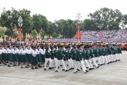 | Phần diễu hành của 13 khối quần chúng. (Ảnh: Nguyễn Hồng) |