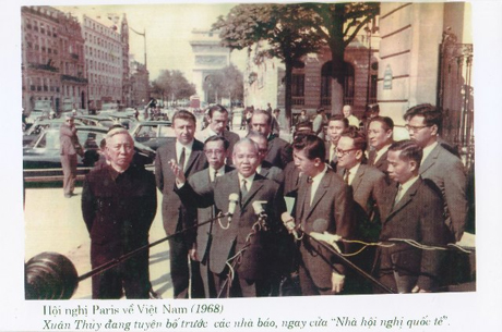 Có lẽ: Ông là người kiêm “nhiều nhà“ nhất: Nhà ngoại giao, nhà thơ, nhà báo… mảng nào ông cũng rất nổi tiếng. Đặc biệt hơn, ông còn gây được sự chú ý cho đối phương cũng như những phóng viên và kiều bào ta những năm ông làm Trưởng đoàn VNDCCH khi đàm phán ở hội nghị Pari về lập lại hòa bình ở Việt Nam (1968-1973). Đó là: Nụ cười Xuân Thủy tự tin vào chiến thắng của dân tộc – Xuân Thủy còn “đánh giặc”… bằng thơ!
