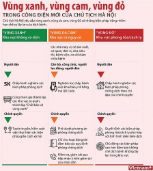 | Covid-19 ở Hà Nội: Phân biệt vùng xanh, vùng da cam và vùng đỏ Trong Công điện 18 về việc tiếp tục thực hiện giãn cách toàn xã hội trên địa bàn thành phố Hà Nội, Chủ tịch Ủy ... |
