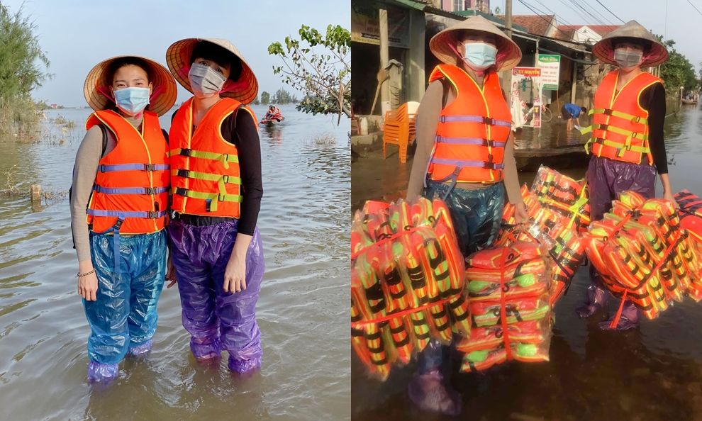 Thủy Tiên là một sao Việt tiên phong phát động hoạt động cứu trợ bà con miền Trung vượt qua bão lũ. Cô trốn chồng cùng các thành viên khác bay ra Huế để triển khai ngay hoạt động cứu trợ. Hình ảnh Thủy Tiên ngồi trên xuồng bồng bềnh giữa biển nước hay xắn quần để có thể tiếp cận từng hộ dân khiến nhiều khán giả thực sự cảm phục.