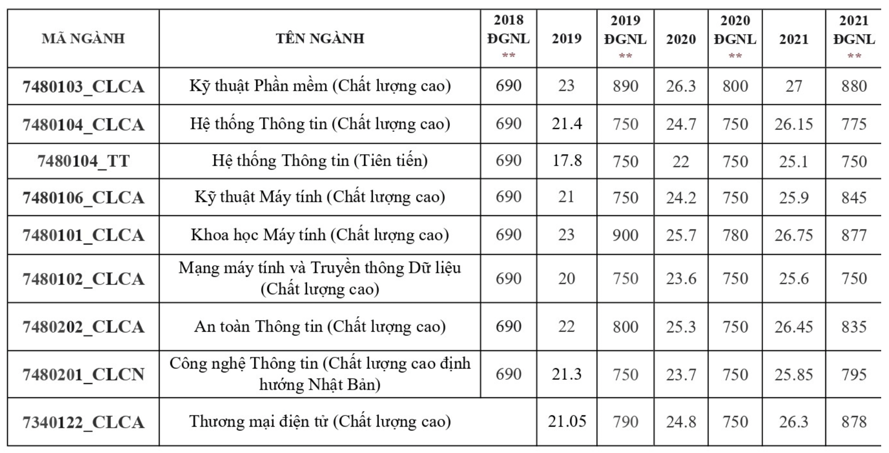 Tham khảo điểm chuẩn Trường Đại học Công nghệ Thông tin các năm trước: