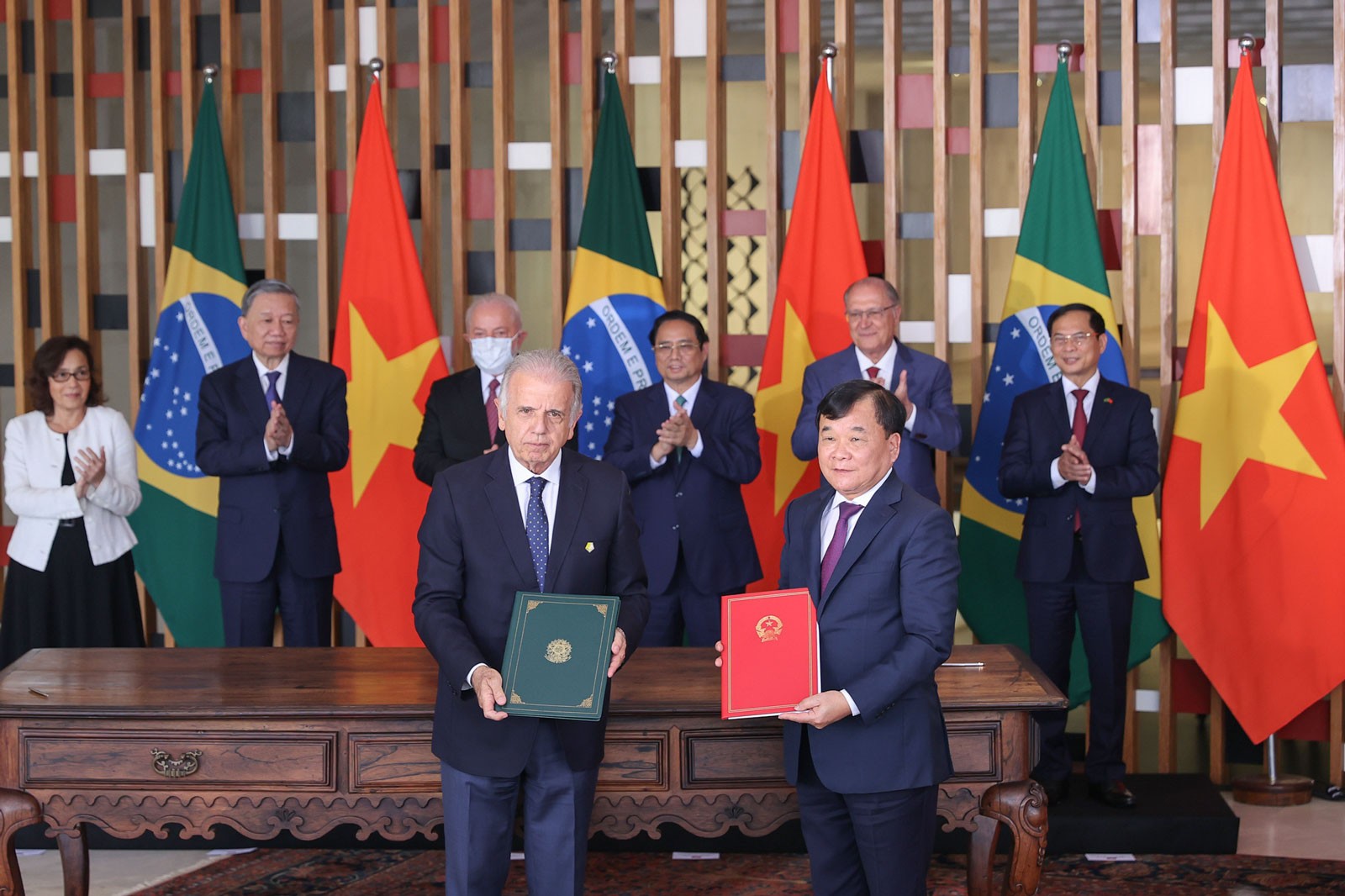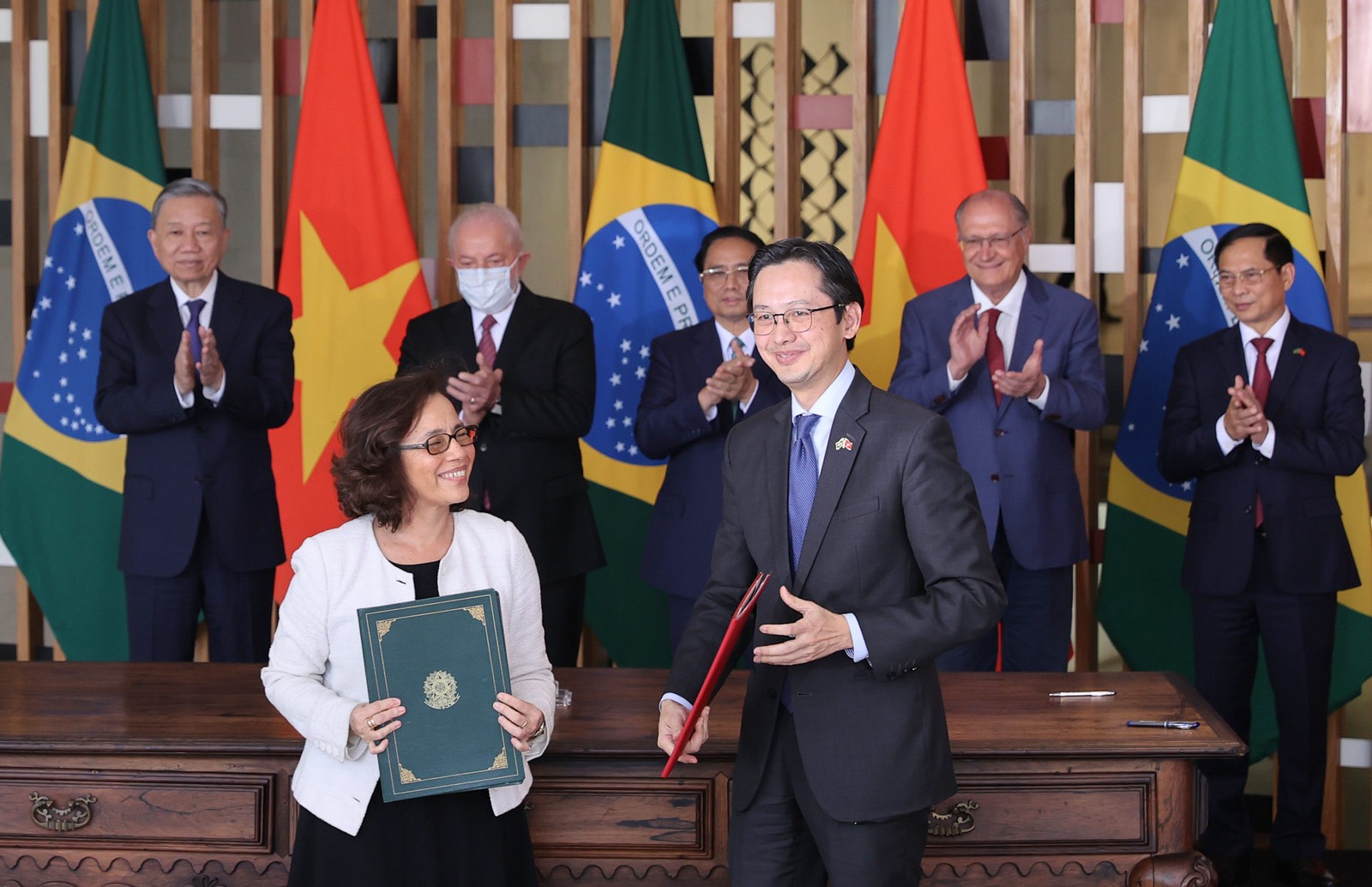 | Qua 35 năm thiết lập quan hệ ngoại giao và đặc biệt từ sau khi xác lập khuôn khổ2 Đối tác toàn diện, quan hệ Việt Nam-Brazil đã đạt được những dấu mốc quan trọng trên nhiều lĩnh vực. Đại sứ đánh giá thế nào về những thành tựu này? Năm 2024 đánh dấu việc quyết tâm đưa quan hệ giữa hai nước lên tầm cao mới nhân kỷ niệm 35 năm thiết lập quan hệ ngoại giao (8/5/1989-8/5/2024) và 17 năm Đối tác toàn diện Việt Nam – Brazil (5/2007-5/2024). Điều này được thể hiện thông qua các chuyến thăm cấp cao, đối thoại hiệu quả và tăng cường hợp tác trên các kênh đối ngoại đảng, ngoại giao nhà nước, ngoại giao nghị viện và đối ngoại nhân dân, các lĩnh vực kinh tế thương mại, nông nghiệp, khoa học-công nghệ đổi mới sáng tạo, công nghệ hàng không vũ trụ, văn hóa, thể thao, du lịch và giao lưu nhân dân. Quan hệ này đã và đang phát triển tích cực trên tất cả các lĩnh vực, hợp tác chính trị ngày càng gắn bó, tin cậy, trong khi quan hệ kinh tế thương mại ngày càng gia tăng. Kể từ khi Thông cáo chung được đưa ra trong chuyến thăm chính thức tới Brazil của Thủ tướng Chính phủ Phạm Minh Chính (9/2023), mối quan hệ giữa hai nước đã có những bước tiến mạnh mẽ trên tất cả các lĩnh vực. Brazil đã thực hiện hai chuyến thăm cấp Bộ trưởng đến Việt Nam. Chuyến thăm đầu tiên là của Bộ trưởng Bộ Khoa học, Công nghệ và Đổi mới sáng tạo Luciana Santos vào tháng 11/2023, nhằm tăng cường hợp tác trong các lĩnh vực khoa học then chốt. Tiếp theo, Bộ trưởng Bộ Ngoại giao Mauro Vieira thăm Việt Nam vào tháng 4/2024, với mục tiêu thúc đẩy đối thoại chính trị, hợp tác kinh tế, thương mại và tăng cường trao đổi văn hóa. Đặc biệt, Bộ trưởng Mauro Vieira cũng chuyển thư mời của Tổng thống Brazil tới Thủ tướng Chính phủ tham dự Hội nghị thượng đỉnh Nhóm các nền kinh tế phát triển và mới nổi hàng đầu thế giới (G20) tại Rio de Janeiro. Về mặt kinh tế và thương mại, Brazil hiện là đối tác thương mại lớn nhất của Việt Nam tại khu vực Mỹ Latinh và xếp thứ hai trong khu vực châu Mỹ, chỉ sau Mỹ. Ngược lại, Việt Nam cũng là một trong những đối tác hàng đầu của Brazil trong ASEAN. Mối quan hệ thương mại giữa hai nước đang trên đà phát triển mạnh mẽ, điều này thể hiện rõ qua kim ngạch thương mại đạt khoảng 7,11 tỷ USD trong năm 2023. Trong đó, Việt Nam nhập khẩu khoảng 4,7 tỷ USD và xuất khẩu khoảng 2,4 tỷ USD các mặt hàng sang Brazil. Trong 9 tháng đầu năm 2024, trao đổi thương mại song phương đạt xấp xỉ 5,8 tỷ USD, tăng 14.3% so với cùng kỳ năm 2023; trong đó kim ngạch xuất khẩu của Việt Nam sang Brazil đạt gần 2 tỷ USD, nhập khẩu từ Brazil đạt hơn 3,8 tỷ USD. Ngoài ra, các lĩnh vực như nông nghiệp, khoa học - công nghệ, văn hóa, cũng như công nghệ bán dẫn, hàng không vũ trụ đang được hai nước tích cực thúc đẩy. Đặc biệt, các hoạt động văn hóa, nghệ thuật, thể thao, du lịch và giao lưu nhân dân cũng được gia tăng, góp phần nâng cao hiểu biết và tình hữu nghị giữa hai dân tộc. Năm 2024 cũng là thời điểm các bộ, ngành cần chủ động đề xuất những sáng kiến mới và triển khai hiệu quả các cam kết đã ký kết, nhằm nâng cao chất lượng và hiệu quả hợp tác giữa Việt Nam và Brazil. |