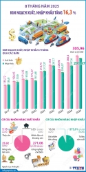 | Tổng kim ngạch xuất, nhập khẩu 8 tháng đầu năm 2025 đạt 597,93 tỷ USD Trong 8 tháng đầu năm 2025, tổng kim ngạch xuất, nhập khẩu hàng hóa đạt 597,93 tỷ USD, tăng 16,3% so với cùng kỳ năm ... |